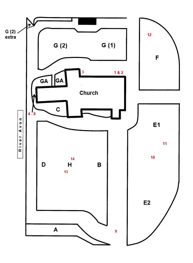 Section E Section plan List of graves Grave notes Photographs Section F Section plan List of graves Grave notes Photographs Section G Section plan List of graves Grave notes Photographs Section H Section plan List of graves Grave notes Photographs Kerbs Sections plan List of kerbs Kerb notes Photographs Miscellany Sections plan List of miscellany Miscellany notes Photographs Inscriptions Some notes on the inscriptions Inscriptions of note
